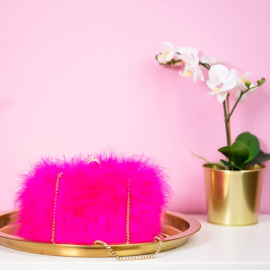 When it’s time to head out to a holiday party, stash all your essentials in our Faux Fur Rhinestone Clutch handbag from Bewaltz. This fuzzy bag is the perfect size for housing your phone, cash, cards, cosmetics and other necessities when going out in the evening. It also has a faux ring design as a closure.This faux fur bag makes a stunning statement against your little black dress for a looks that will turn heads. Also available in Light Pink, Grey and Light Peach. You can use it as a clutch but it also comes with a chain in case you’d prefer to carry it on your shoulder!Â
