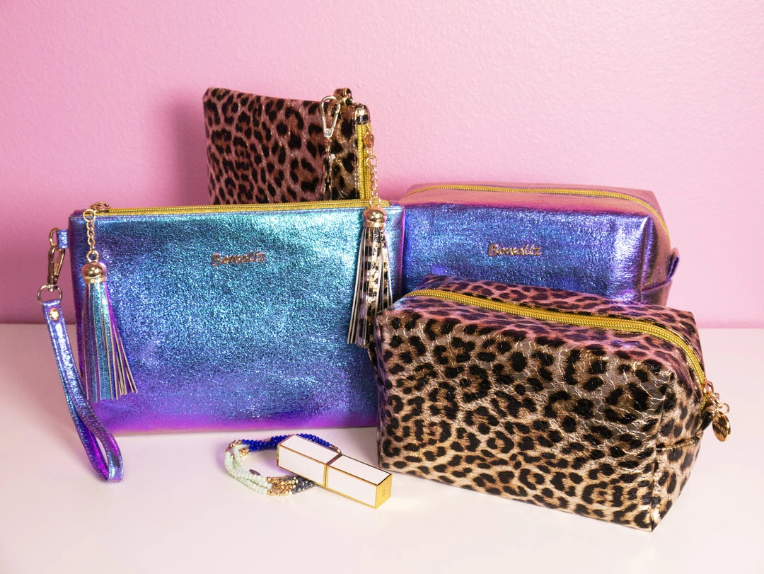 ROAR IT OUT with our shimmering metallic Leopard print make-up bag! No animals were harmed in making this lovely bag! Lightweight but still capable of carrying all your beauty essentials, you’ll still be able to shimmer with ferociousness for everyone!