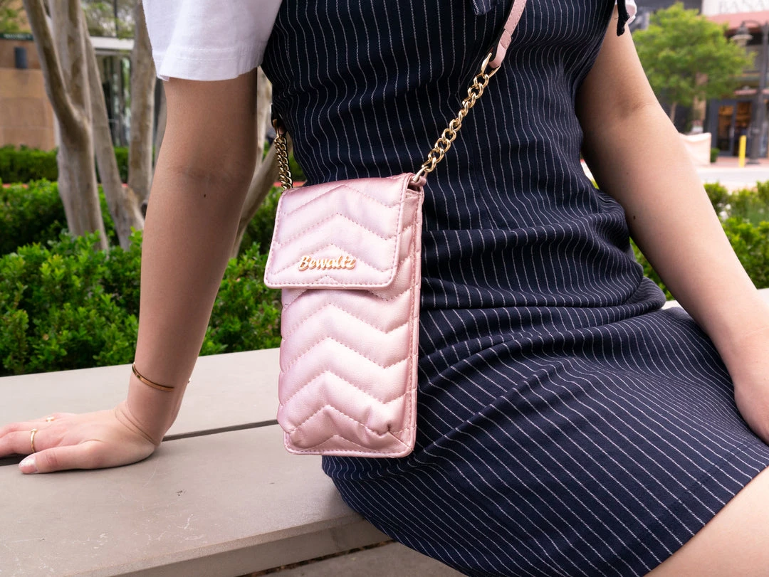 Float on a cloud of serenity with our metallic Mini Crossbody Phone Wallets. They’ll keep you calm and collected while on the go, able to carry the few essentials with ease. Mila comes in five colors: Pink, Blue, Rose Gold, Hot Pink and Black!