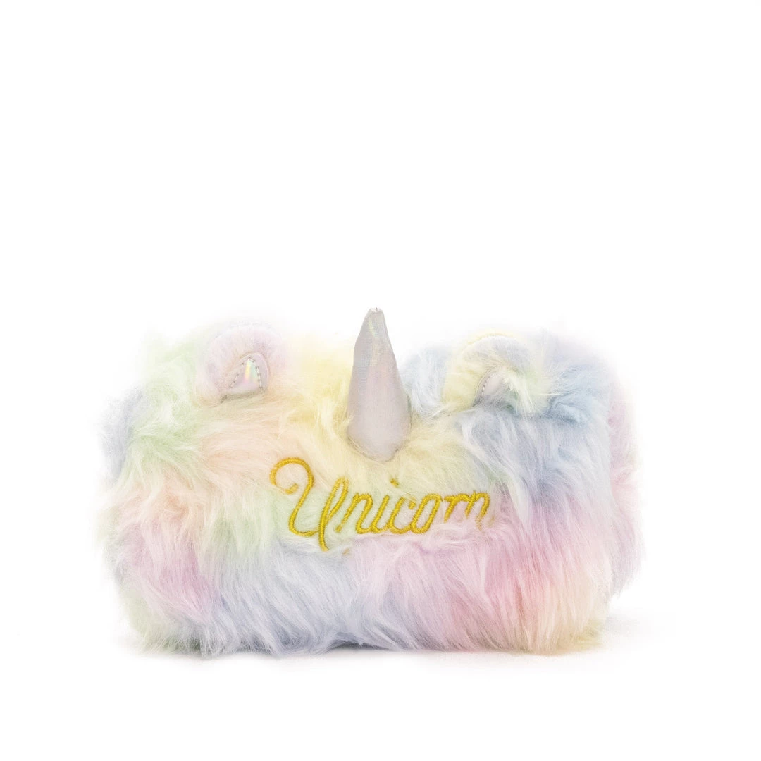 This furry, rainbow-colored soft pouch is the perfect addition to your kawaii stationery storage collection! It is made for the cheerful, unicorn lover in your life. The horn in the middle is flexible and soft so you don’t have to worry about it being a hazard. Makes a great stocking stuffer, birthday gift, and present for almost any occasion. The zipper keeps your belongings safe for portable security while you are out and about.