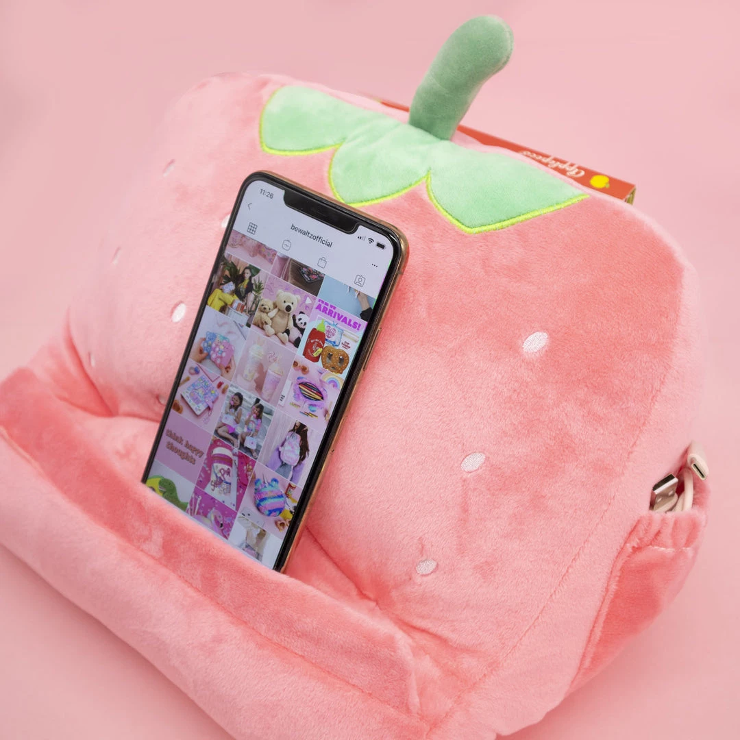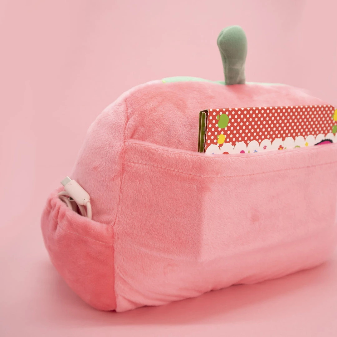 A fun plushie device stand that keeps it all together with compartments and pockets for all your techy needs.