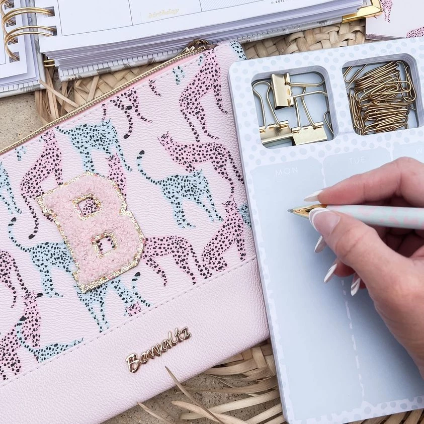 Our Pink Leopard Pouch will keep your stationery safe and sound but also looking pretty and pink too! It also works great for storing your makeup brushes! It makes perfect for a gift to a friend or to add to a gift basket!