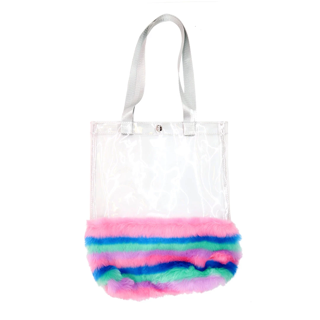 CLEARLY you need this tote! You get the best of both worlds here: the soft plush feel along with the trendy clear material.
