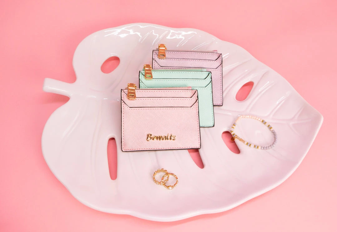 Soft, delicate, chic. Those are all words that come to mind to describe our new Pastel Scarlett Key-chain card holders! Attach to any wallet or bag combo and keep all your important cards in one place while still maintaining your classy reputation of course. 😉