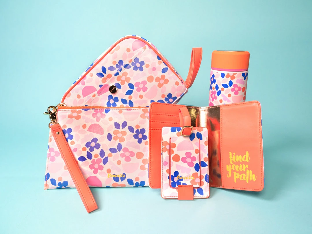 Our popular Stainless Steel Tumblers got a nice refresh with the “Paper Flowers”, “Heart You”, and “Cats & Dogs” pattern. These tumblers pair nicely with all of the items in our latest Travel Collection. Don’t get caught sipping out of anything else!