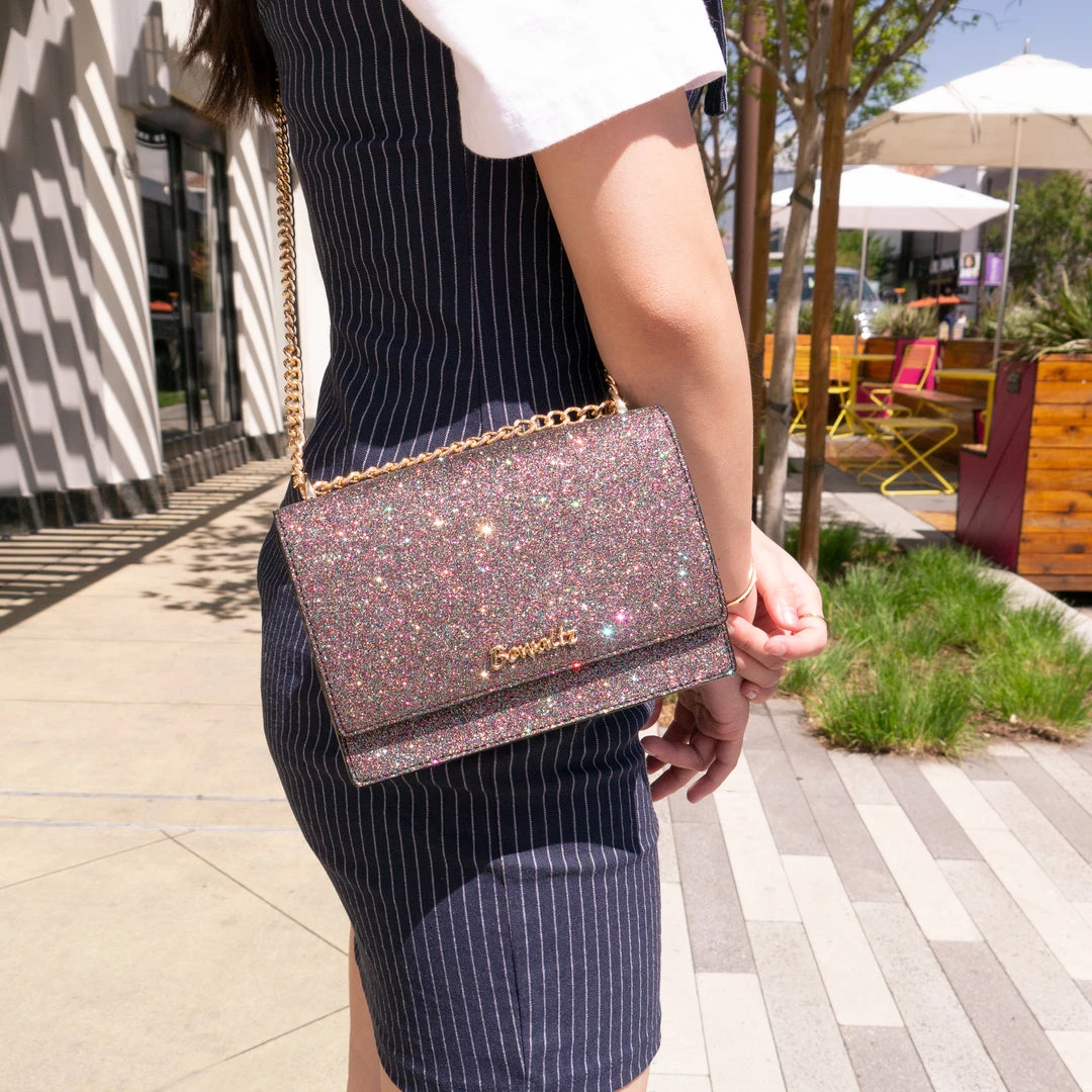 Glam around or glitz out with our shimmering glitter Crossbody Bags! Made with the most fantastic of quality the glitter shines even brighter than you could imagine! IT doesn’t shed, so you wont be getting glitter all over your outfit, but you’ll still be able to glimmer for everyone!