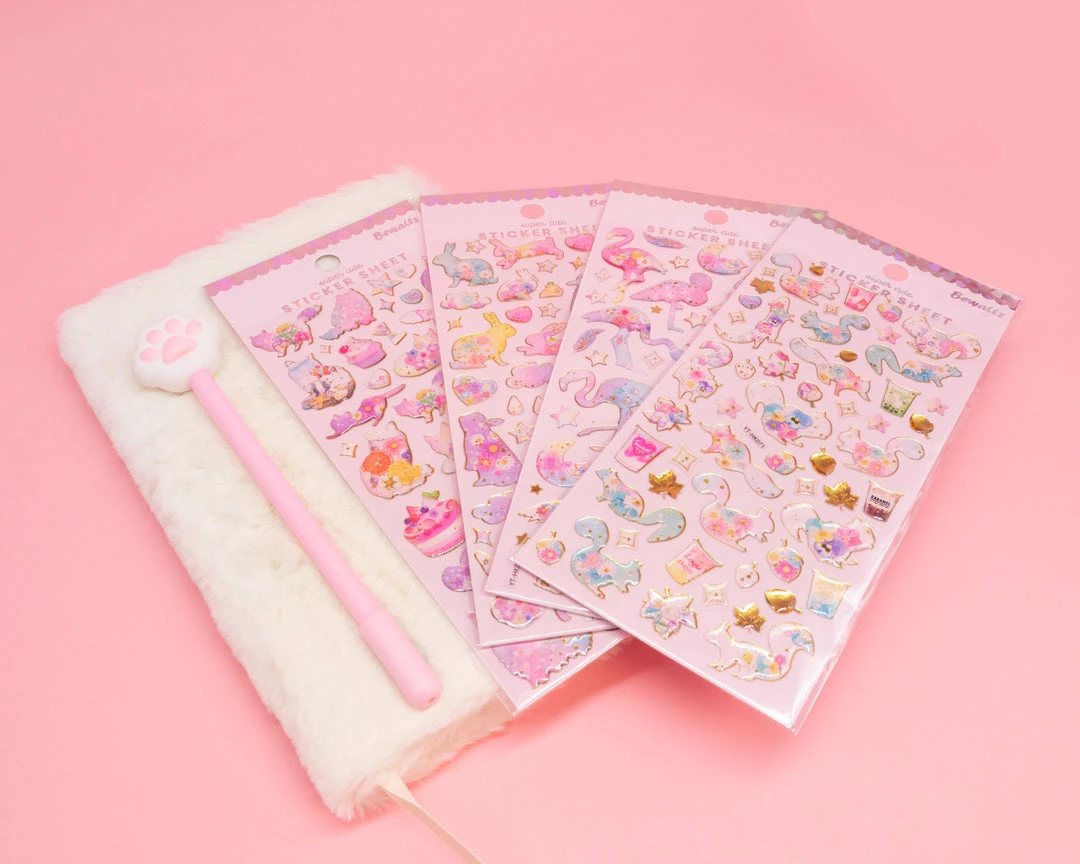 This is the ultimate set for cat and stationery lovers alike! Our notebook is totally touchable and ever so soft and what better company than the most lovable cat paw gel pen? Here’s the details on what you get in this set: